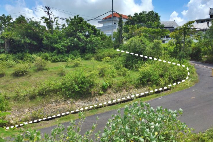 Land for sale with ocean views in the Cemongkak Beach tourist area of Pecatu, Bali.